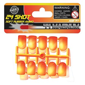 Parris VendorsITEM NUMBER #924 | UPC: 047379009166 Includes 24 soft rubber toy bullets per bag. Ammo used with Items: 4650C and 4650SB MINIMUM ORDER QUANTITY (MO...