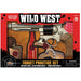 Practice your aim in the Wild West with this fun target practice set! Includes 1 Plastic Pistol that has a working hammer with an 8 shot cylinder, 20 Soft Rubber Ammo, 3 stand up knock over targets - 1 Can, 1 Bottle and 1 Snake.